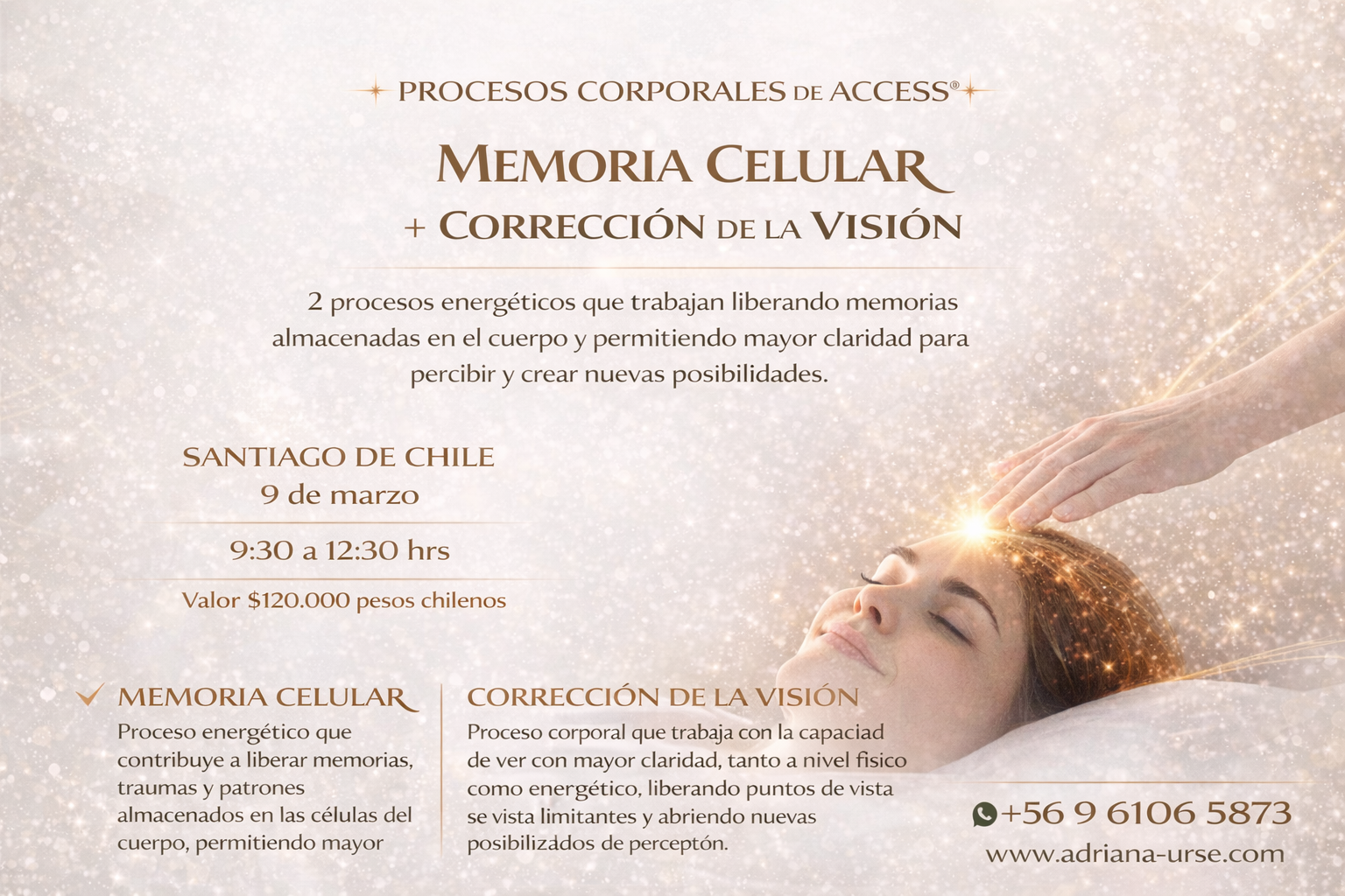 La combinación de Memoria Celular y Corrección de la Visión permite trabajar tanto las memorias almacenadas en el cuerpo como la forma en que percibimos y vemos, integrando liberación física, emocional y energética en una misma experiencia.