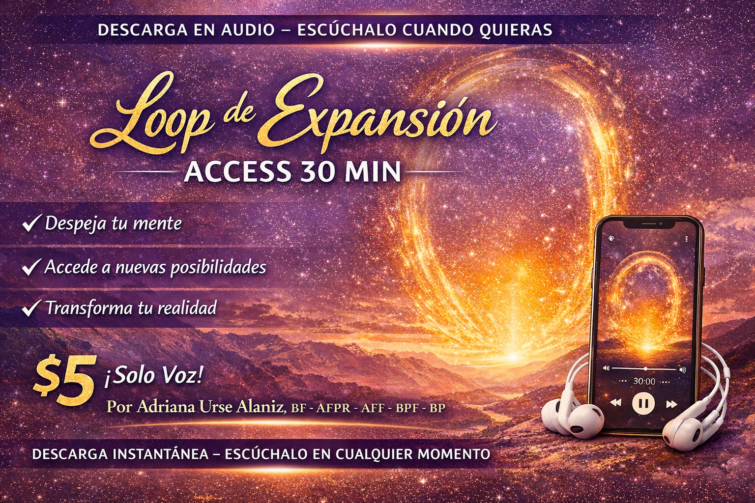 A través de la repetición consciente, preguntas expansivas y el uso del enunciado aclarador, este audio te invita a salir de las estructuras mentales, liberar cargas y permitir que algo totalmente diferente se abra en tu vida.