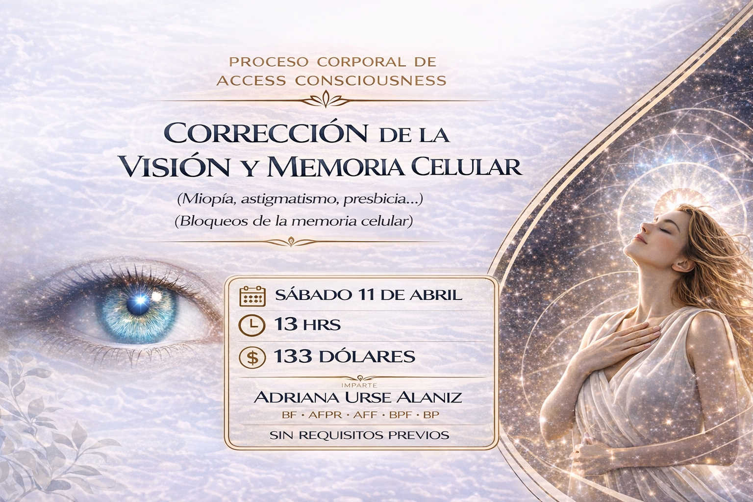Este proceso de Access Consciousness® trabaja energéticamente sobre los ojos, el sistema nervioso y las memorias que influyen en la forma en que vemos, liberando cargas que pueden estar afectando la visión física y la percepción en general.