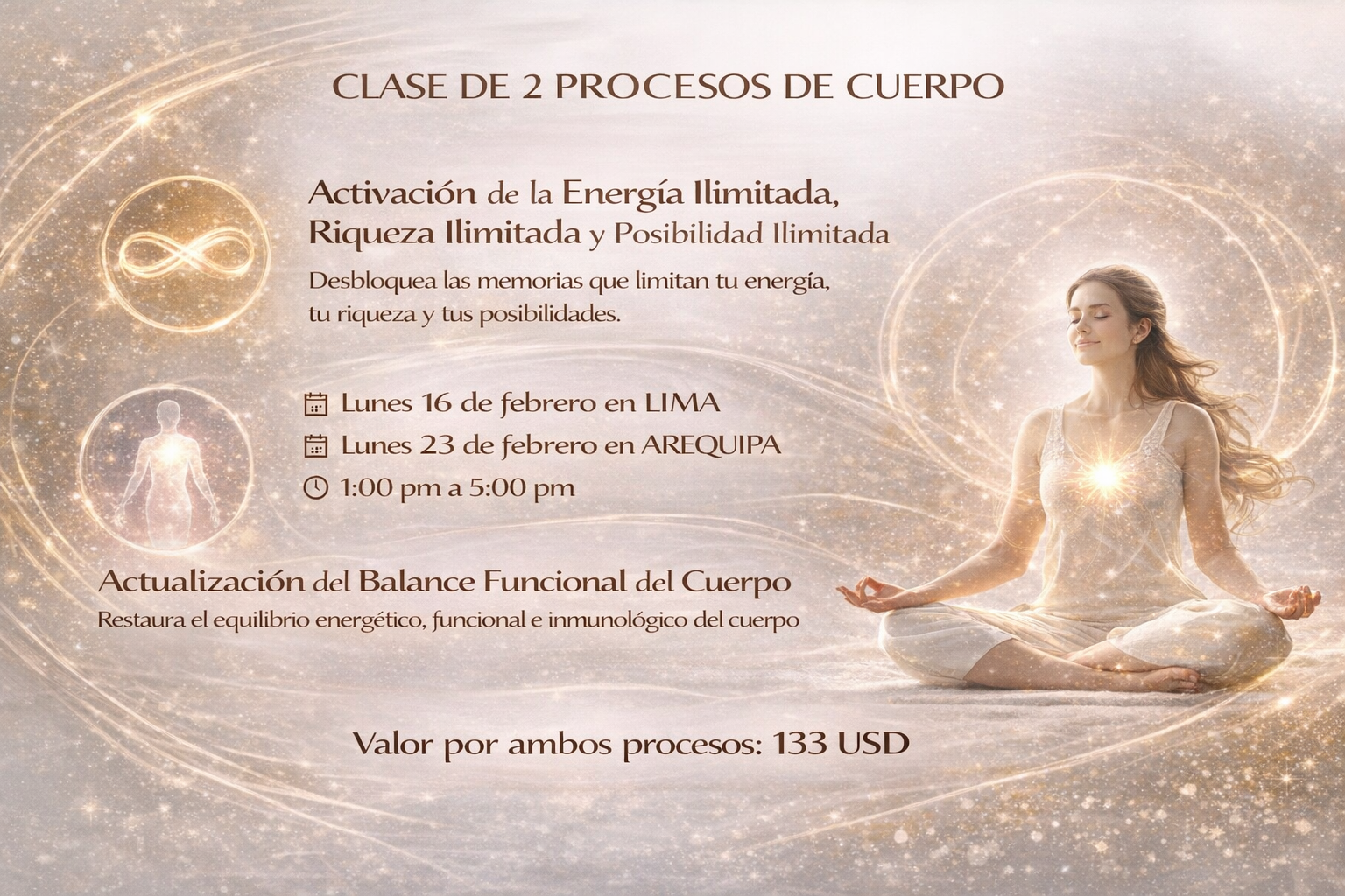 En esta clase especial recibirás dos poderosos procesos corporales de Access Consciousness®, diseñados para acompañar al cuerpo a salir de patrones antiguos, actualizar su funcionamiento y abrirse a una mayor energía, riqueza y posibilidad en la vida.