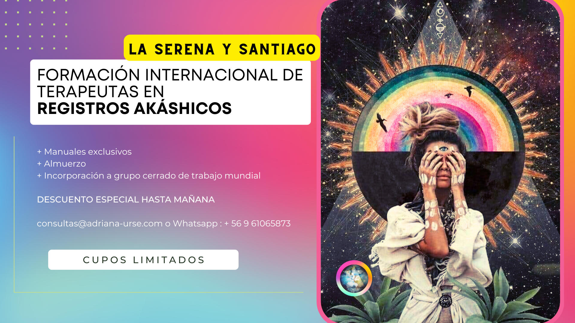 CONSULTAS DE REGISTROS con Adriana Urse: 75 dólares - Para quienes tomen el curso y quieran una consulta, el valor será de 65 dólares.